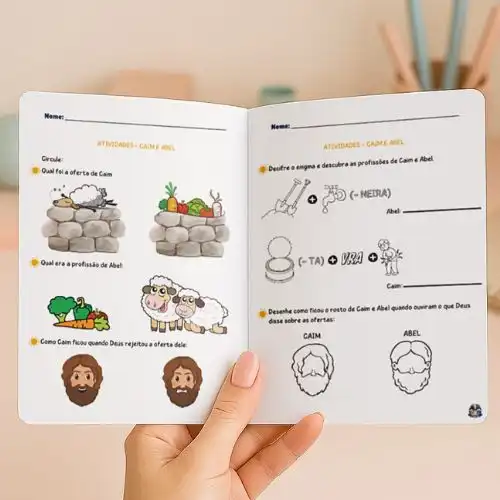 Este bônus imperdível traz 10 atividades interativas e educativas inspiradas na história de Caim e Abel + Jogo da velha. Uma forma dinâmica de as crianças se conectarem com a narrativa, fixarem os conceitos do devocional e desenvolverem habilidades enquanto refletem sobre importantes lições de vida.